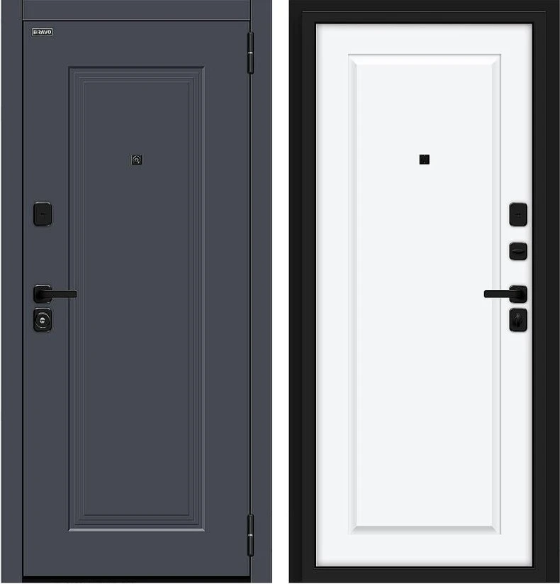 Надежная входная Дверь Браво Айкон/SBlack Graphite Shell/White Silk премиум класса по цене 45 745 руб. Большая толщина стали защитит от проникновения в ваш дом, квартиру или коттедж. Используется очень качественная фурнитура: замки, цилиндры, ручки, защелки. Покрытие и отделка двери изготовлено под внимательным контролем производителя. Дверь имеет долгий срок службы и гарантию.