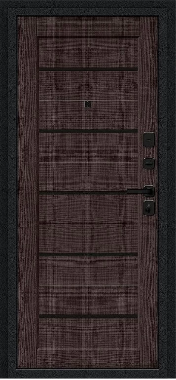 Надежная входная Дверь Браво Борн/SBlack Букле черное/Wenge Melinga премиум класса по цене 32 975 руб. Большая толщина стали защитит от проникновения в ваш дом, квартиру или коттедж. Используется очень качественная фурнитура: замки, цилиндры, ручки, защелки. Покрытие и отделка двери изготовлено под внимательным контролем производителя. Дверь имеет долгий срок службы и гарантию.
