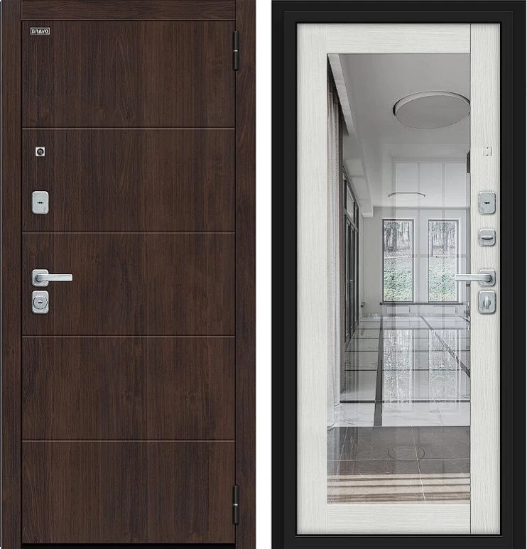 Надежная входная Дверь Браво Флэт/BChrome Almon/Bianco Melinga премиум класса по цене 42 375 руб. Большая толщина стали защитит от проникновения в ваш дом, квартиру или коттедж. Используется очень качественная фурнитура: замки, цилиндры, ручки, защелки. Покрытие и отделка двери изготовлено под внимательным контролем производителя. Дверь имеет долгий срок службы и гарантию.