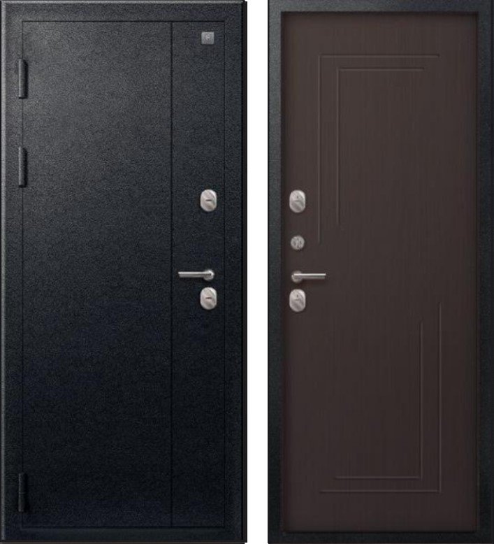 Надежная входная Дверь Термо-100 Черный муар - Темная лиственница премиум класса по цене 44 675 руб. Большая толщина стали защитит от проникновения в ваш дом, квартиру или коттедж. Используется очень качественная фурнитура: замки, цилиндры, ручки, защелки. Покрытие и отделка двери изготовлено под внимательным контролем производителя. Дверь имеет долгий срок службы и гарантию.