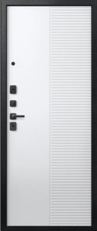 Надежная входная Дверь V-18 Черный муар + Кашемир графит - Кашемир Белый премиум класса по цене 46 425 руб. Большая толщина стали защитит от проникновения в ваш дом, квартиру или коттедж. Используется очень качественная фурнитура: замки, цилиндры, ручки, защелки. Покрытие и отделка двери изготовлено под внимательным контролем производителя. Дверь имеет долгий срок службы и гарантию.